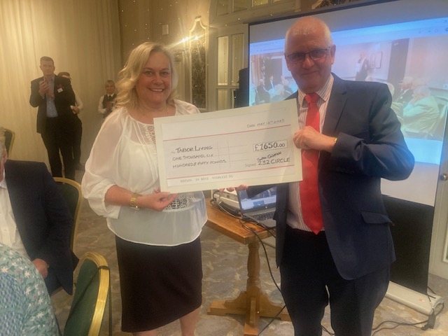 Distinguished Guests enjoying the celebrationGreat Britain National President Andrew Sowerby presenting the cheque to Caroline Gorman of Tabor Living.