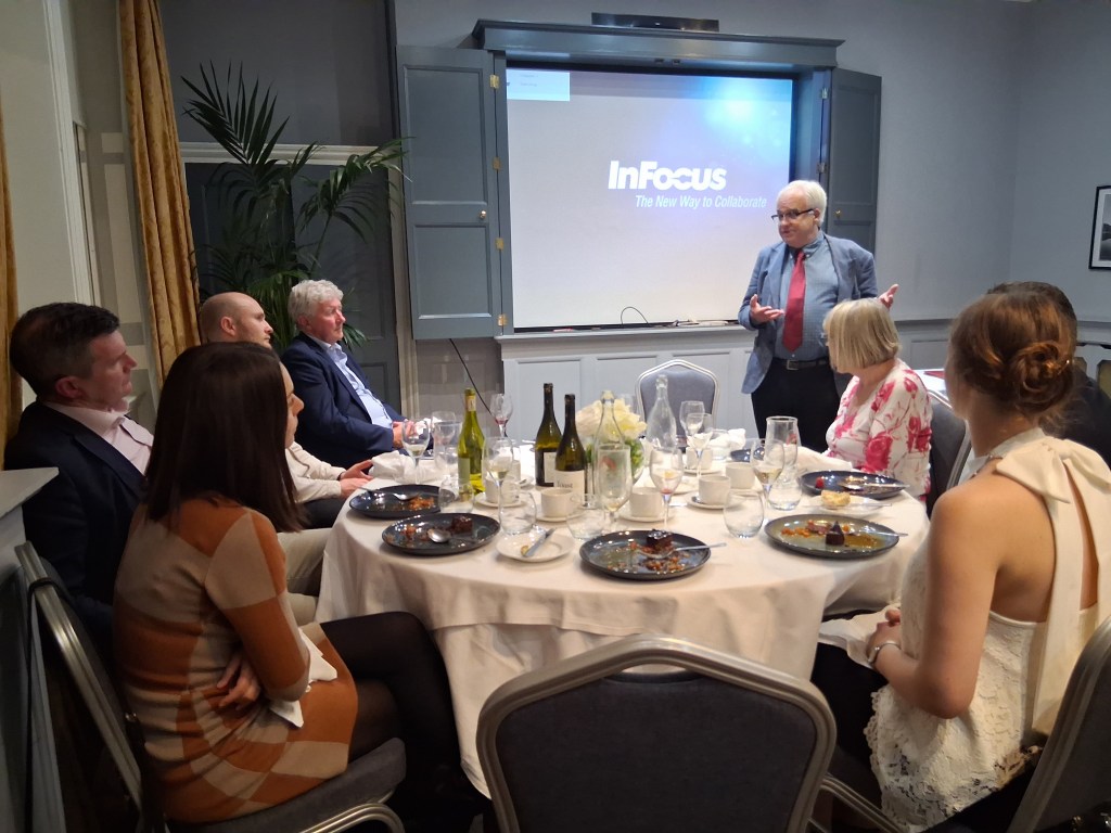 At dinner the evening’s programme was most ably run by the Master of Ceremonies by circle member Peter Westbrook in his usual humorous style and with a look back over the early days of the circle by circle member Liam Tomlinson .The evening was highlighted with the presentation of a cheque for £1650-00 by Andrew Sowerby to Caroline Gorman of Tabor Living a Birmingham based charity which was Tony Walsh’s charity for his Presidential year . The charity provides better opportunities for people experiencing homelessness in Birmingham. Based at St Catherine’s church in Bristol Street the charity works with people over 25 of any gender and offers first steps and move on accommodation with tailored support for people at different stages of their journey away from homelessness. There is good news for the charity.Tony is carrying on as President for 2025/6 and has adopted Tabor Living again for his charity.